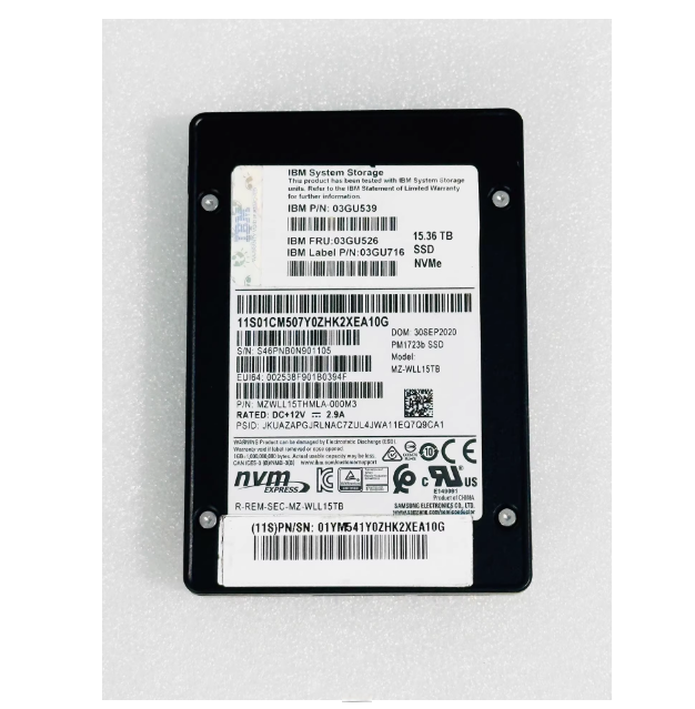 03GU539 is a high-performance, high durability enterprise NVMe solid-state drive designed specifically for FlashSystem 9x00 and 7x00 series full flash storage arrays. This hard drive is typically used in the 03GU526 NVMe expansion cabinet (rack) of storage systems as a core component to enhance storage capacity and performance. It’s hardware foundation is the PM1723B enterprise level disk body, which has undergone strict certification and customized firmware debugging to ensure perfect compatibility and reliability with the storage system.