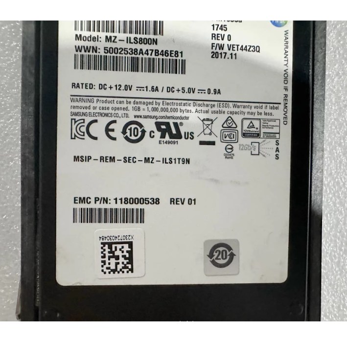 118000538 is a high-performance enterprise grade solid-state drive that features a 12Gb/s SAS interface and a 2.5-inch form factor, providing 800GB of storage capacity. This hard drive is designed specifically for EMC Unity series storage systems, compatible with 005052385 and 005052167 storage expansion shelves, and uses PM1635A enterprise grade disk bodies to provide reliable storage solutions for critical business operations.