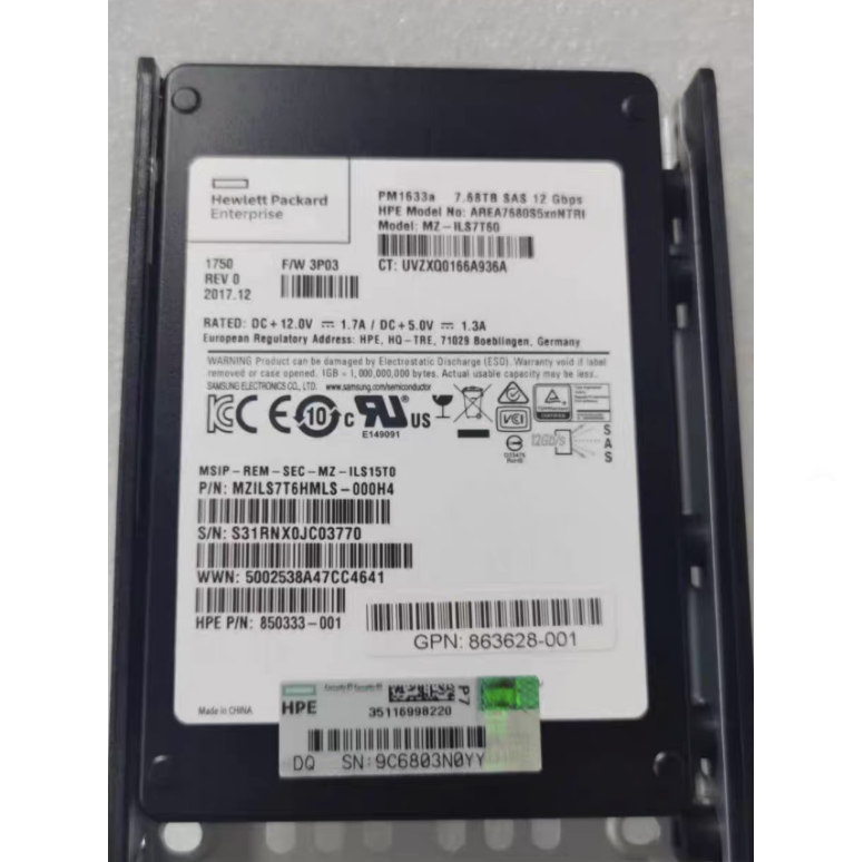 HPE 850333-001 (disk model PM1633a) is a high-performance, high-capacity enterprise NVMe solid-state drive that utilizes an enterprise level solution developed in collaboration with leading flash memory manufacturers. This hard drive is designed specifically for enterprise critical business systems that require high-performance and large capacity storage, achieving the best balance between performance, capacity, and reliability. It is suitable for applications such as virtualization, databases, and cloud computing.